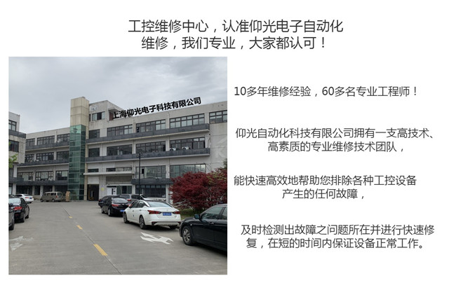 上海仰光電子科技有限公司經驗豐富,專業維修工控設備,配件齊全,服務周到,價格合理,交貨迅速,提供免費檢測。歡迎來電咨詢,您的滿意是我們的追求。 公司擁有大量技術人員,經驗豐富,配件齊全,服務周到,價格合理,交貨迅速,提供免費檢測。