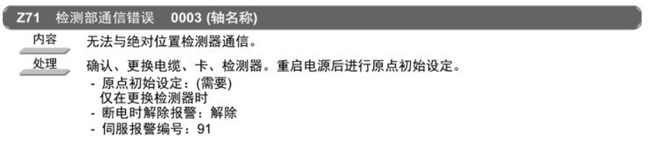 三菱數(shù)控系統(tǒng)報警Z71 0003報警處理:數(shù)控設備的外部故障可以分為軟故障和外部硬件損壞引起的硬故障。軟故障是指由于操作、調(diào)整處理不當引起的,這類故障多發(fā)生在設備使用前期或設備使用人員調(diào)整時期。對于數(shù)控系統(tǒng)來說,另一個易出故障的地方為伺服單元。由于各軸的運動是靠伺服單元控制伺服電機帶動滾珠絲杠來實現(xiàn)的。用旋轉編碼器作速度反饋,用光柵尺作位置反饋。一般易出故障的地方為旋轉編碼器與伺服單元的驅動模塊。也有個別的是由于電源原因而引起的系統(tǒng)混亂。特別是對那些帶計算機硬盤保存數(shù)據(jù)的系統(tǒng)。