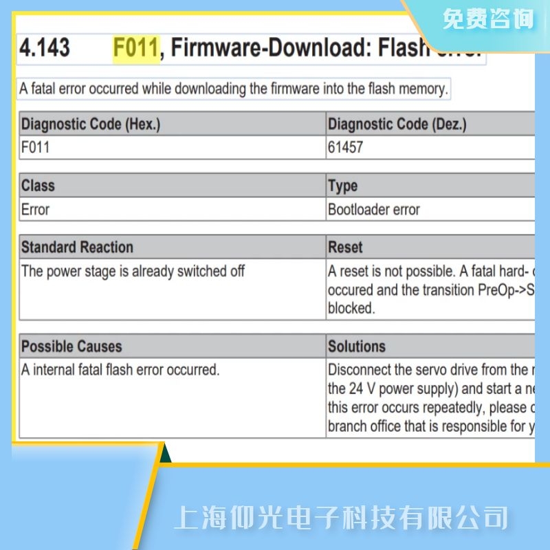 beckhoff伺服驅動器報F011閃存錯誤故障維修解析: